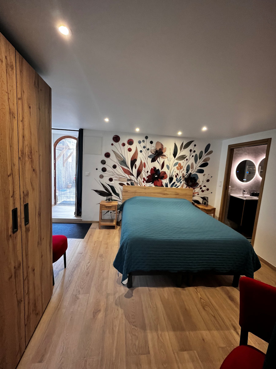 La chambre se situe dans l’aile gauche de notre habitation , si besoin n’hésitez pas à venir à la maison ou à l’accueil de l’auberge situé au dessus de celle-ci. Accès par les escaliers en pierre .